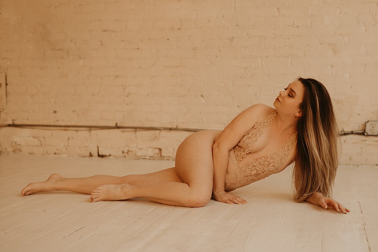 The fact of the matter is, no matter what weight we’re at, or what’s going on with our hair, or skin, as women (and humans in general), we’ll find something to point at and say “ew. fix this. now”. I know that I was even more unhappy at my old weight than I am at my new one. There is absolutely no reason to wait to “get your body back” or “get rid of some of this extra weight” or “work on being less bloated” when it comes to boudoir. The right outfit (or no clothes at all), the right pose, and the right lighting, will make you feel your best, not losing weight.
